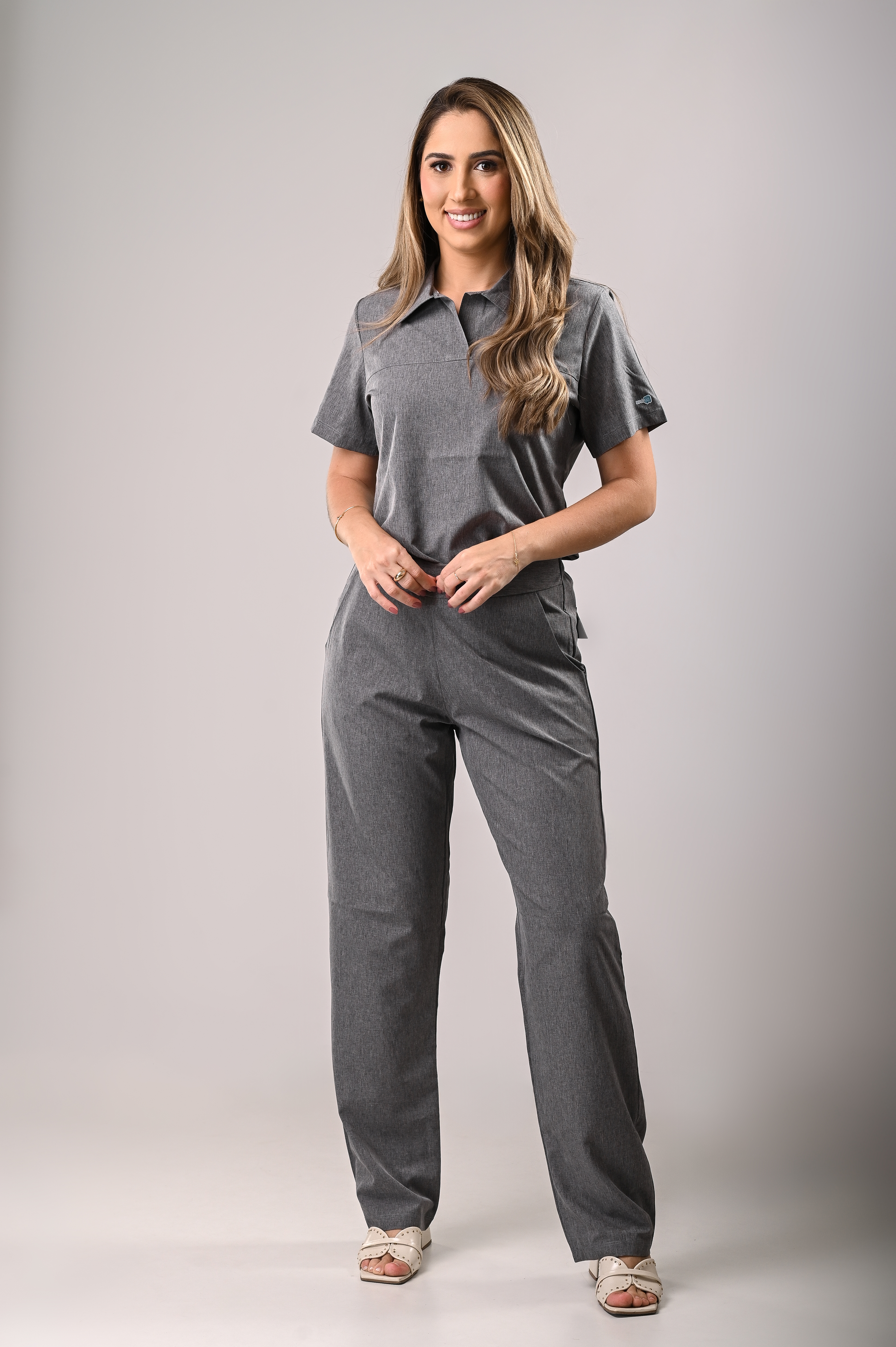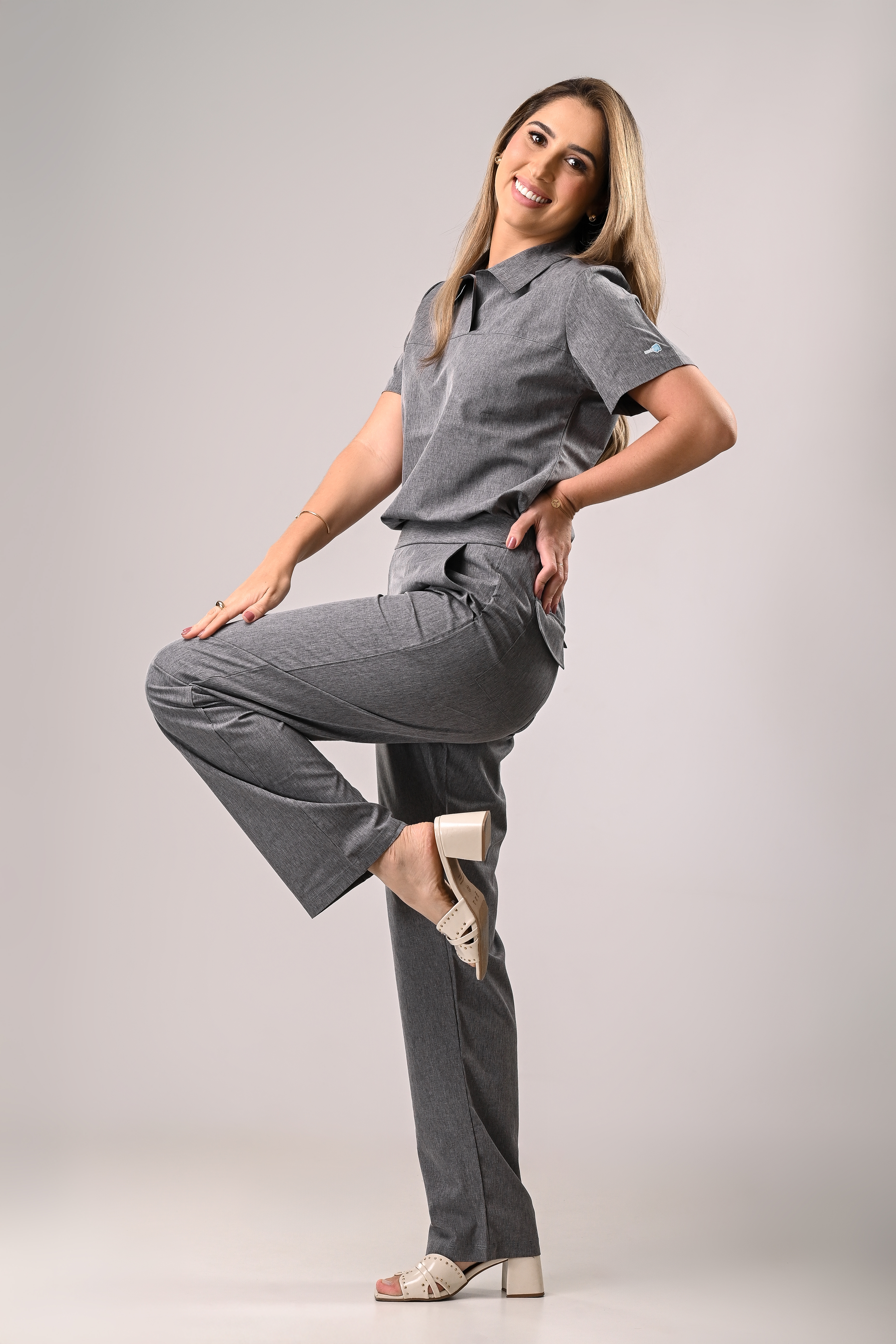 Disponível nas cores - Branco, Branco gelo, Cinza Escuro, Bordo, Grafite, Verde Capri, Azul Claro e Azul Mediterrâneo -, este conjunto não é apenas um uniforme, é uma declaração de estilo e confiança para as mulheres que desejam se destacar com elegância e classe em seu ambiente de trabalho.